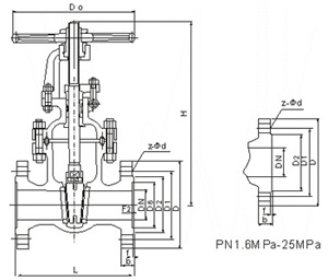 Z41H、Z41Y、Z41W(PN160)鑄鋼閘閥外形及結構尺寸(mm)