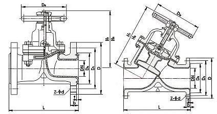 直流式襯膠隔膜閥外形尺寸圖