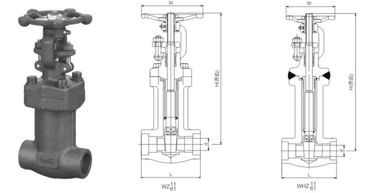 波紋管鍛鋼閘閥外形尺寸圖