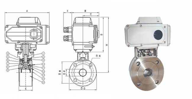 四、電動(dòng)法蘭球閥 外形尺寸圖